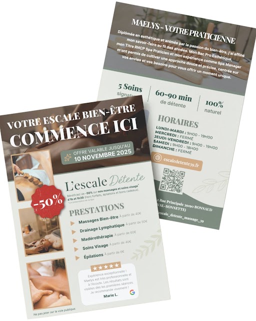 Solutions graphiques Travaux réalisés pour ce client : Flyers Plaquettes Commerciales Cartes…